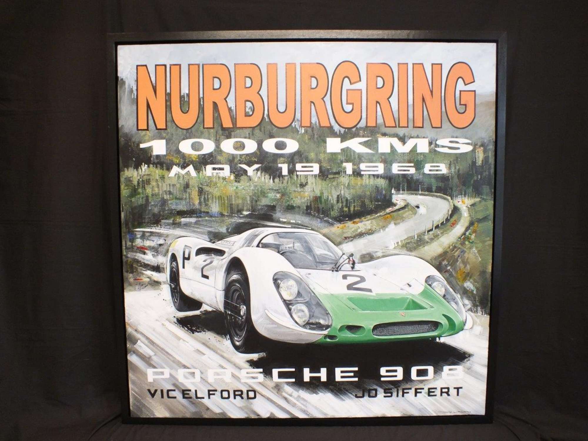 " Nurburgring - Porsche 908 ". A framed original Tony Upson acrylic on canvas painting. 105cms x 105cms.