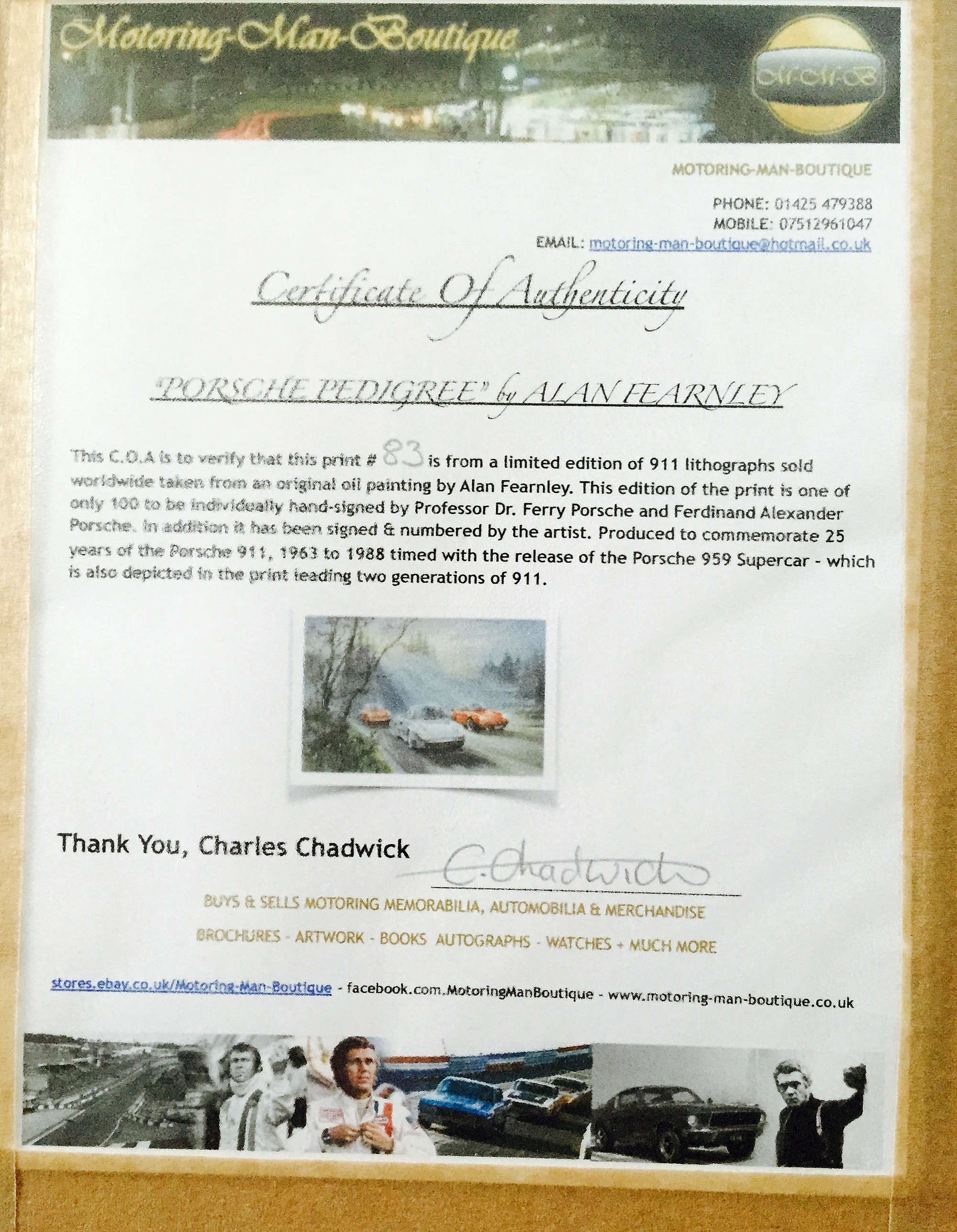 - "Porsche Pedigree" hand signed by Dr Ferry Porsche & Ferdinand Alexander Porsche