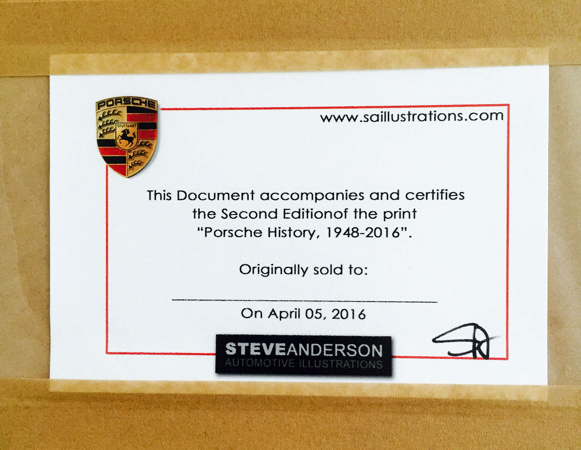 - "Porsche History V2 1948-2016", Signed by artist Steve Anderson