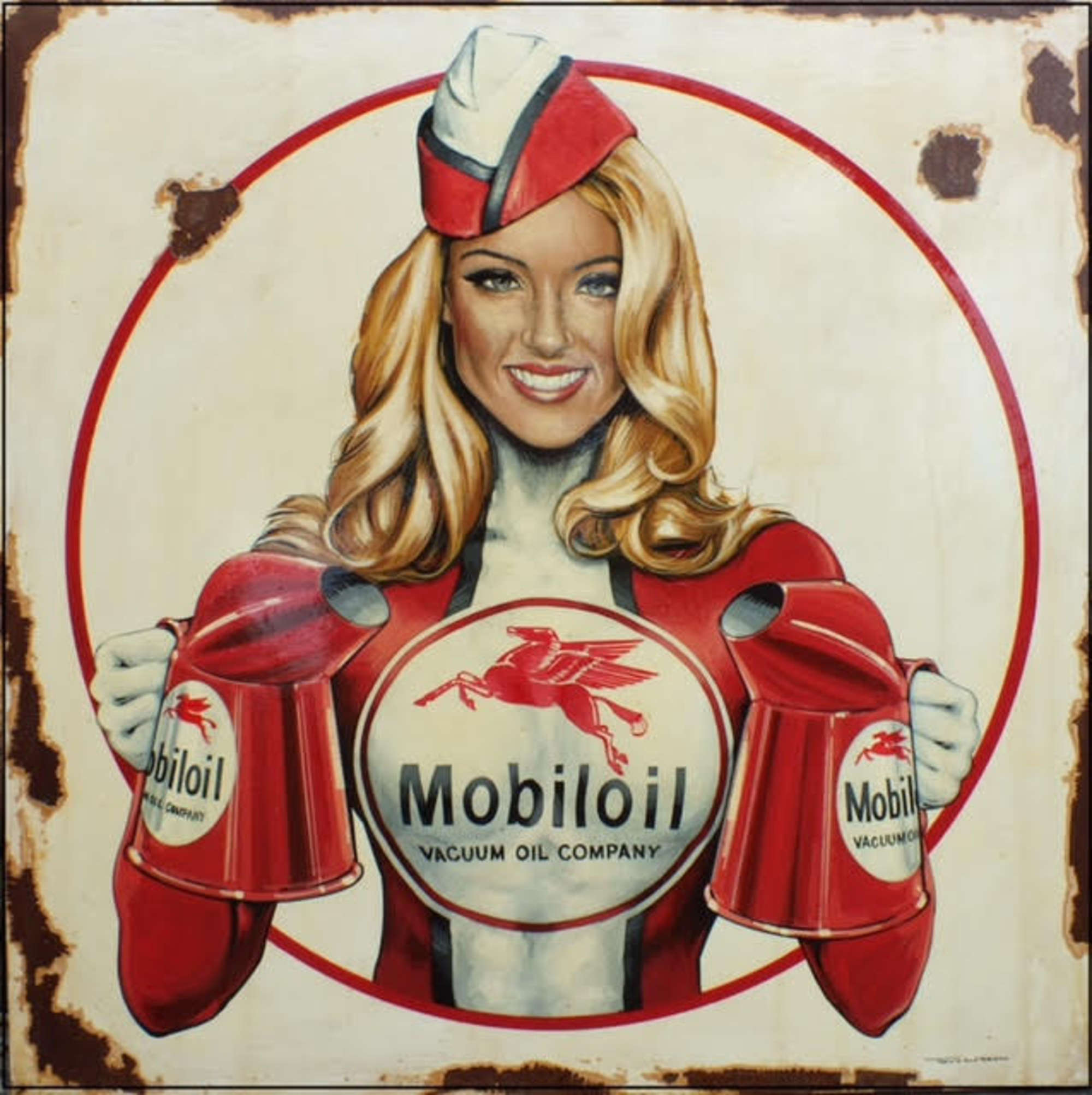 "Mobiloil Sales". An original acrylic on sheet painting by Tony Upson, framed, 106cmx106cm, weight 15kg.